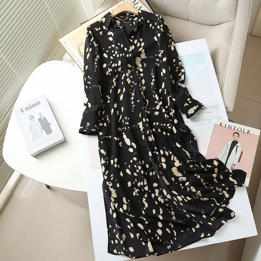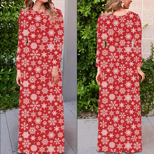 Bedrucktes langes Kleid für Damen im Herbst mit V-Ausschnitt