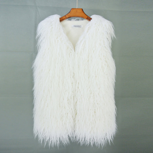 Lange Strand-Wollfell weste warme Weste Damenweste Mantel