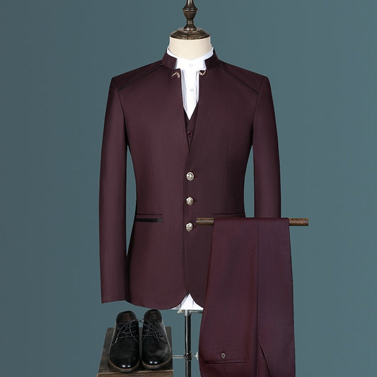Stehkragen Männer Blazer Hosen Weste Business männer Hochzeit Anzug Jacke Mantel Hose Weste Hohe Qualität Dünne Weste Kleid set