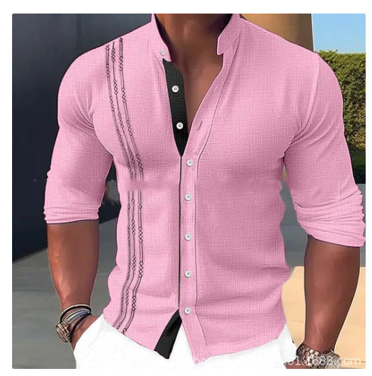 Sommer Herren mode Langarm Hemd mit Stehkragen und Knöpfen