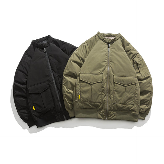Modische Flieger-Daunenjacke für Herren und Frauen mit Stehkragen und Arbeitskleidung