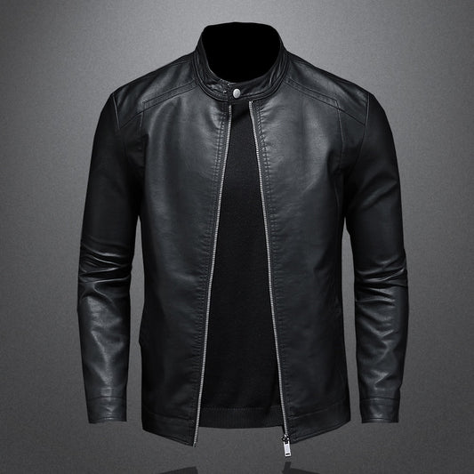 Frühling Herbst Leder Jacke Männer Stehen Kragen Dünne Pu Leder Jacke Mode Motorrad Kausalen Mantel