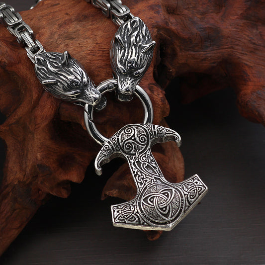 Vintage quadratische Kette Titan Stahl Anhänger Wolf Kopf Halskette Herren Pullover Kette