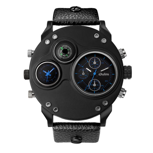 Oulm Einzigartige Sport Uhren Männer Luxus Marke Zwei Zeit Zone Armbanduhr Dekorative Kompass Männlichen Quarzuhr relogio masculino