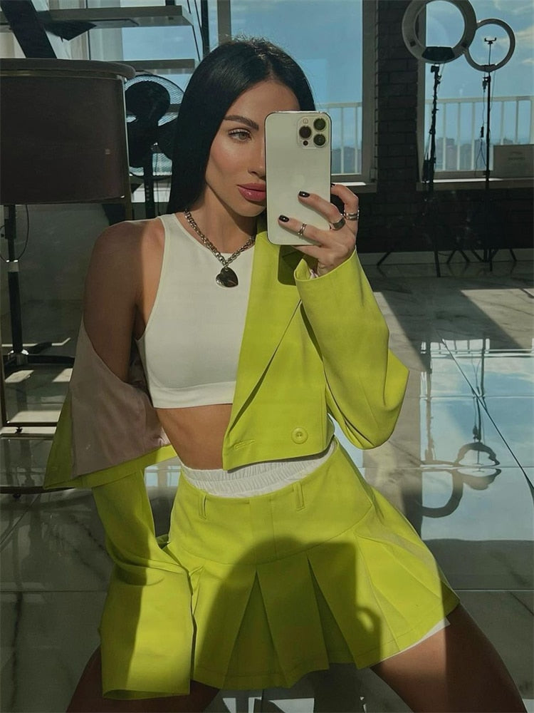 Zwei Stück Sets frauen Herbst Outfits 2023 Neue Schwarz Passenden Sets Mit Rock Und Blazer