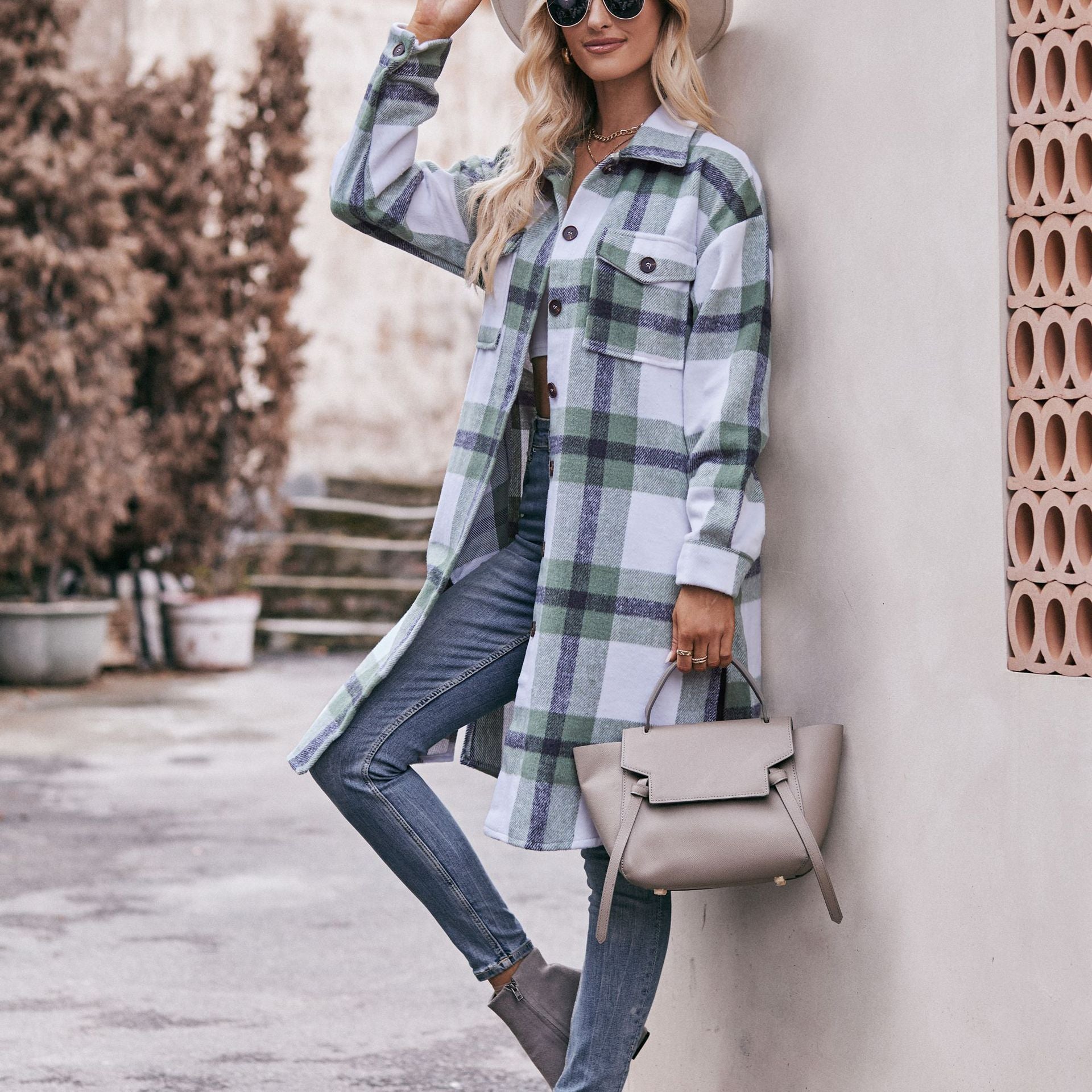 Lässiger langer Mantel mit kariertem Flanellhemd