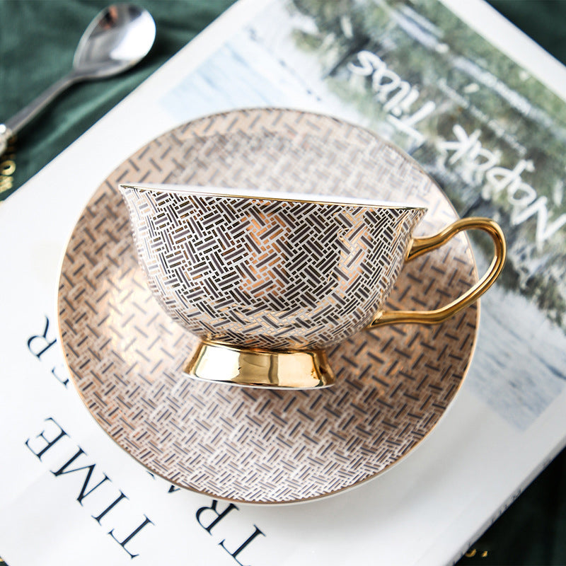 Gold grid coffee cup saucer sp