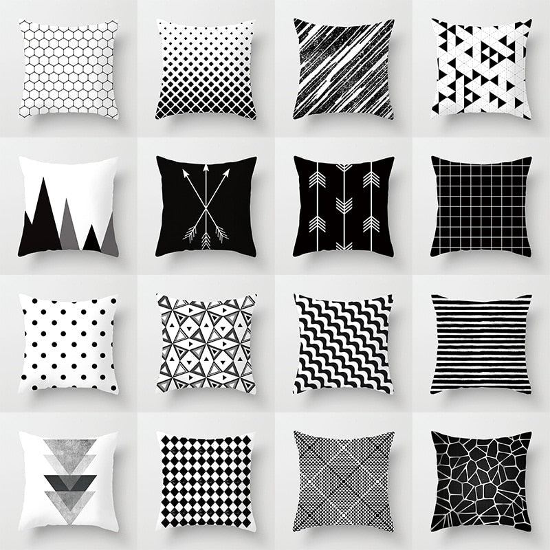 Geometrische Kissen Abdeckung Schwarz und Weiß Polyester Werfen Kissen Fall Gestreift Gepunktete Raster Dreieckige Geometrische Kunst Kissen Abdeckung
