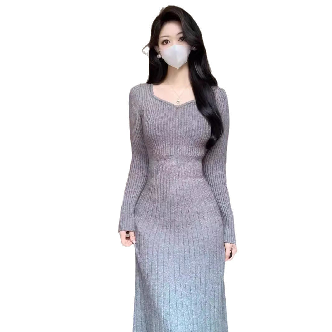 Gestricktes Herbst/Winter-Pulloverkleid lang unterhalb des Knies