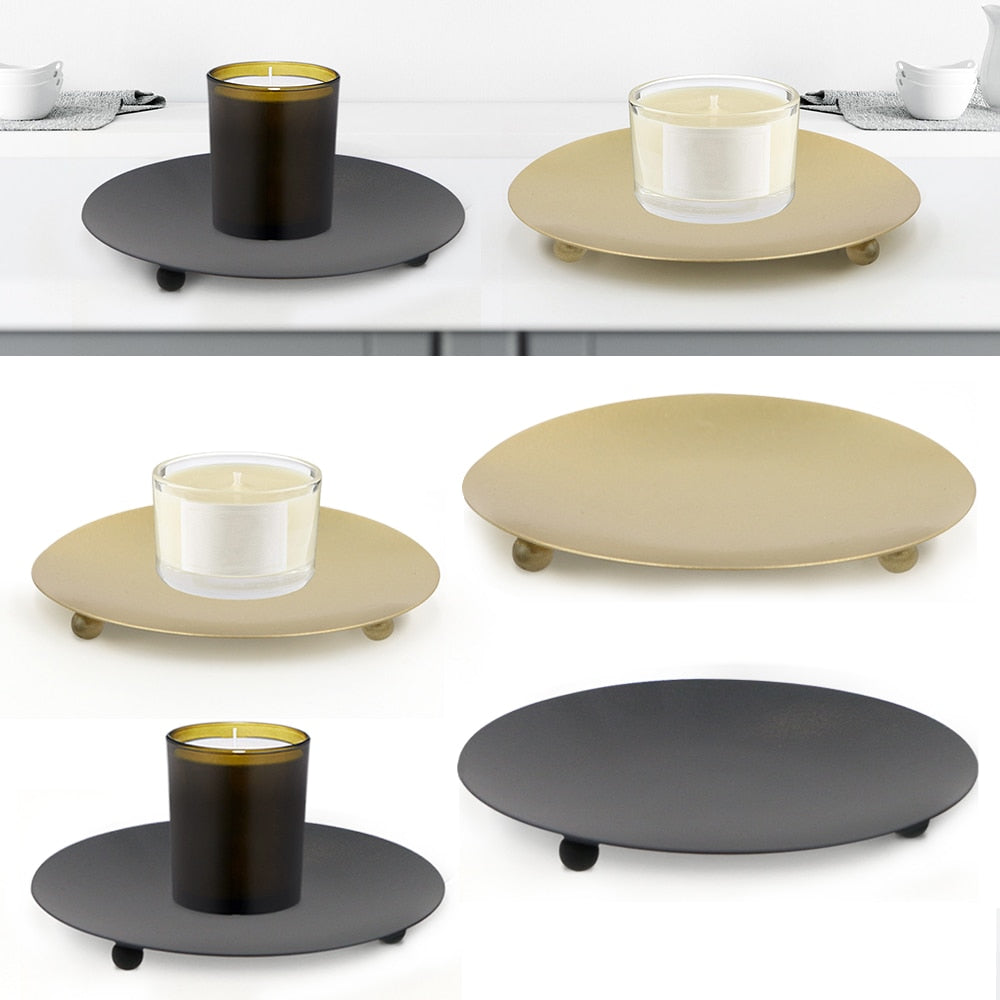 Eisen Schwarz Gold Überzogene Kerzenhalter Säule Metall Platte für Hochzeit Party Festival Leuchter Halter Kunst Geschenk Hause Dekoration