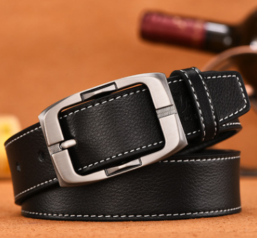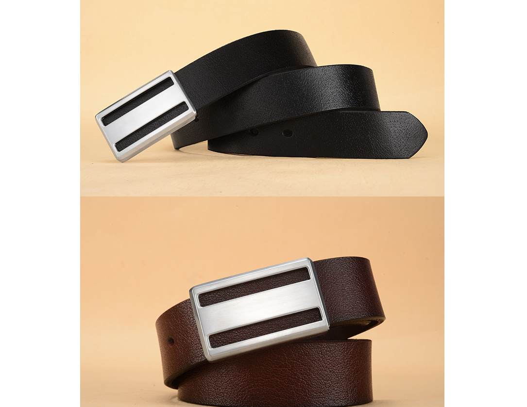 Herren-Gürtel mit glatter Schnalle modischer Business-Gürtel zwei lagieger Ledergürtel