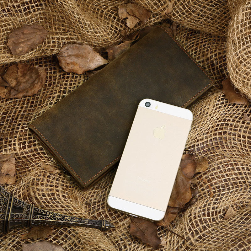 Herren Geldbörse Retro Crazy Horse-Leder lange vertikale Geldbörse