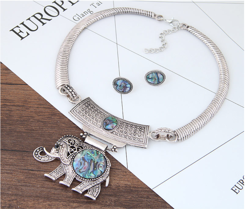 Einfaches und niedliches Elefantenhalsband-Halsketten-Ohrring-Set aus Metall
