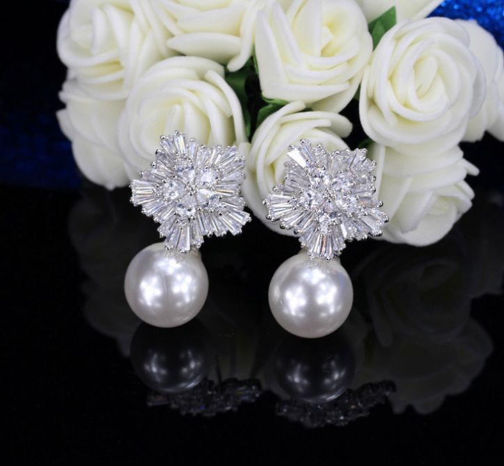 Perlenohrringe für Frauen mit luxuriösem feuerwerksförmigem Zirkonia Damenschmuck Geburtstagsgeschenk