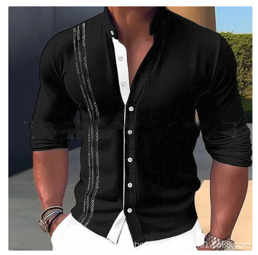 Sommer Herren mode Langarm Hemd mit Stehkragen und Knöpfen