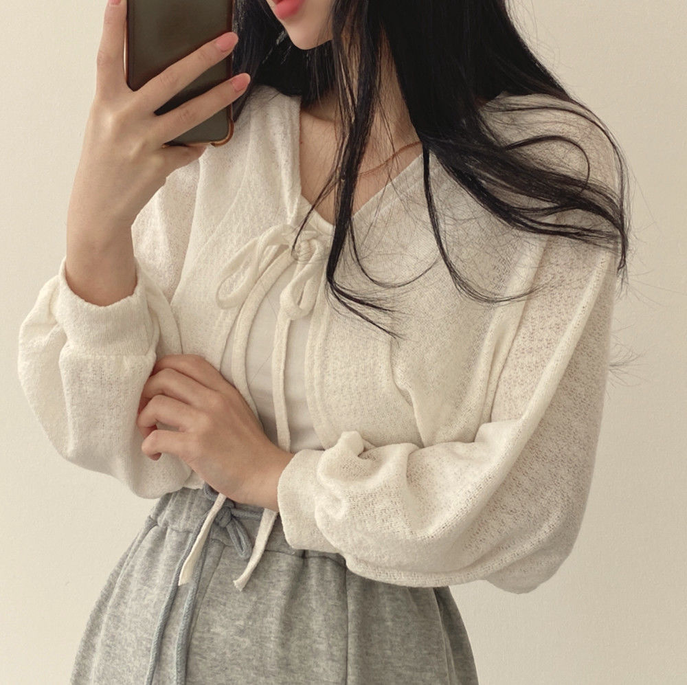 Dünne Weiße Strickjacke Verband Laterne Hülse Kurzen Mantel Ziehen